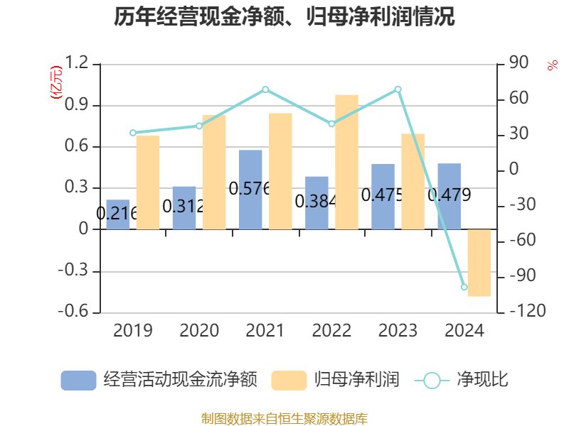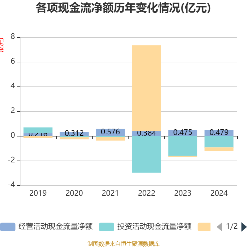 截至2024年,公司经营活动现金流净额为4786.09万元,同比增长0.68%;筹资活动现金流净额-3041.55万元,同比减少2177.77万元;投资活动现金流净额-9352.31万元,上年同期为-1.62亿元。
