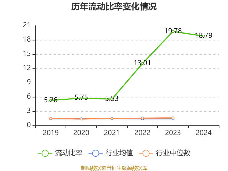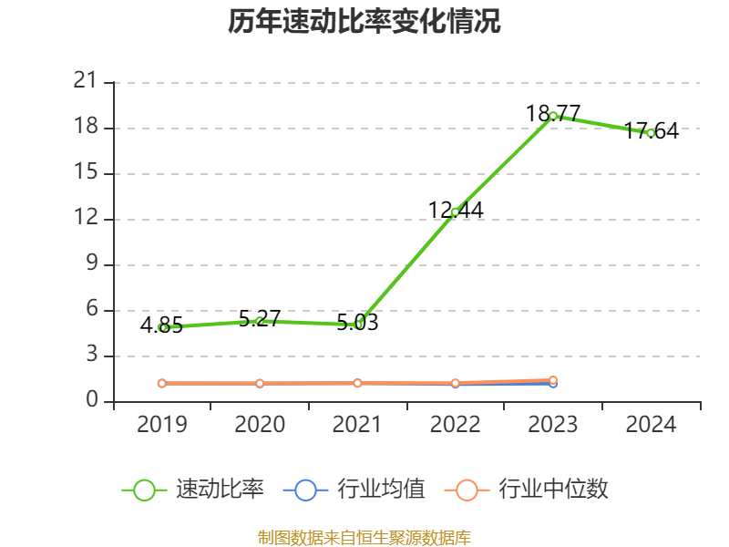 2024年,公司流动比率为18.79,速动比率为17.64。
