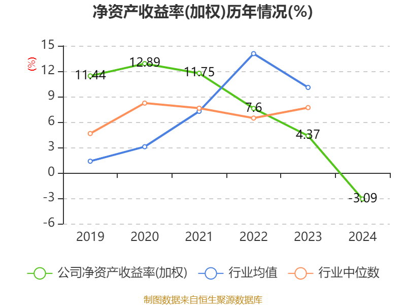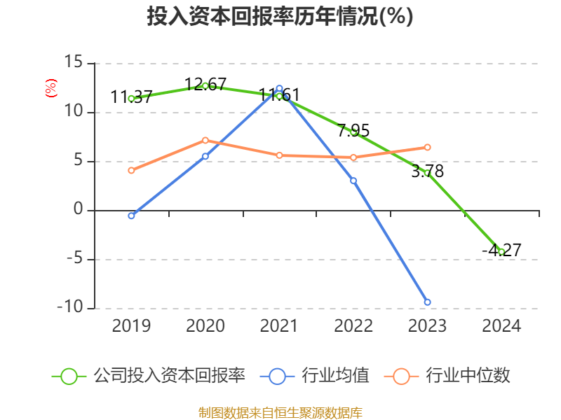 数据显示,2024年公司加权平均净资产收益率为-3.09%,较上年同期下降7.46个百分点。公司2024年投入资本回报率为-4.27%,较上年同期下降8.05个百分点。