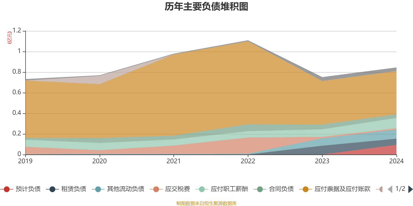 负债重大变化方面,截至2024年末,公司预计负债占公司总资产的0.59%,上年末为0;应付职工薪酬较上年末增加36.3%,占公司总资产比重上升0.19个百分点;租赁负债较上年末减少30.89%,占公司总资产比重下降0.14个百分点;其他流动负债较上年末增加22.44%,占公司总资产比重上升0.13个百分点。