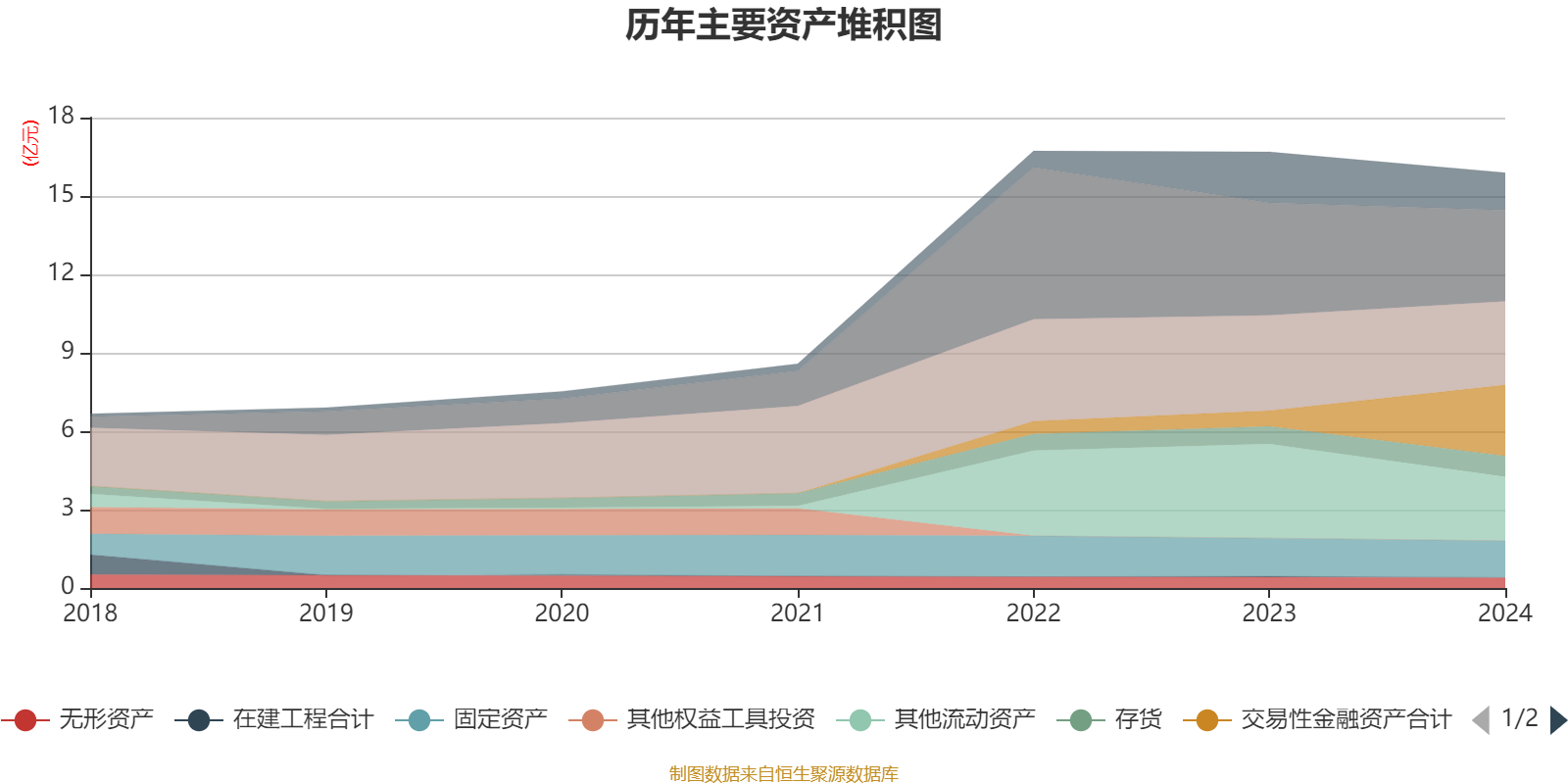 资产重大变化方面维嘉优配平台,截至2024年末,公司交易性金融资产合计较上年末增加351.98%,占公司总资产比重上升13.5个百分点;其他流动资产较上年末减少31.97%,占公司总资产比重下降6.17个百分点;货币资金较上年末减少19.02%,占公司总资产比重下降3.86个百分点;长期股权投资较上年末减少86.58%,占公司总资产比重下降3.06个百分点。