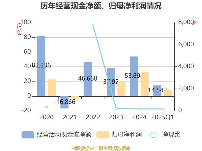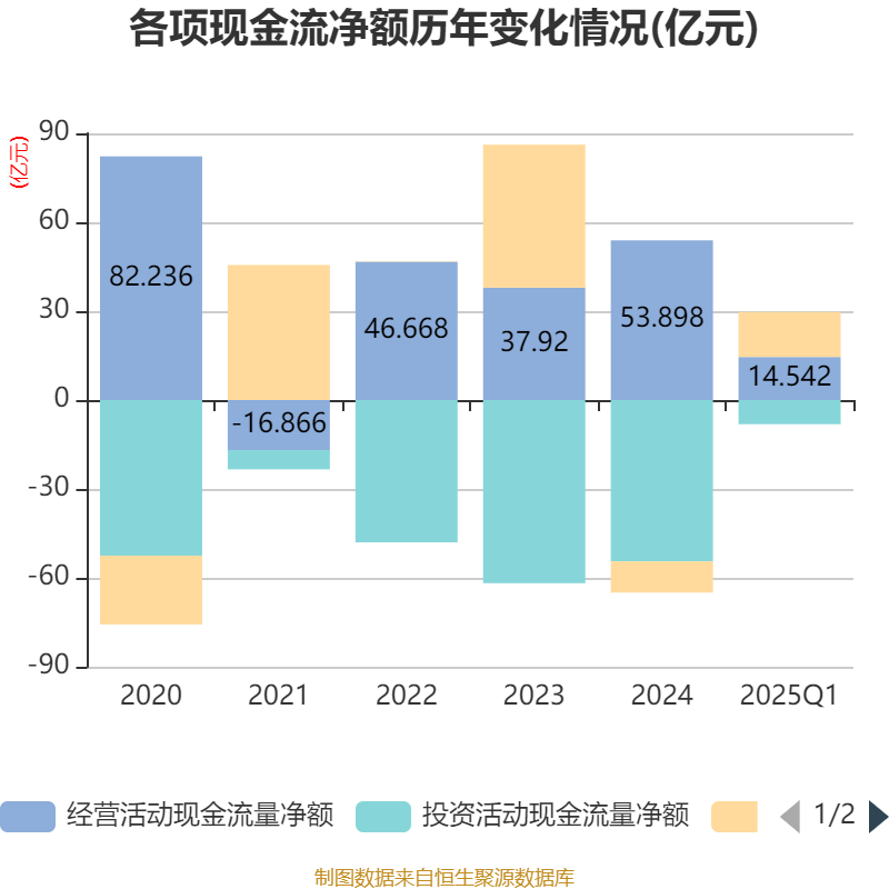 截至2025年一季度末九五配资,公司经营活动现金流净额为14.54亿元,同比增长1373.88%;筹资活动现金流净额15.16亿元,同比增加23.03亿元;投资活动现金流净额-8.14亿元,上年同期为7.56亿元。