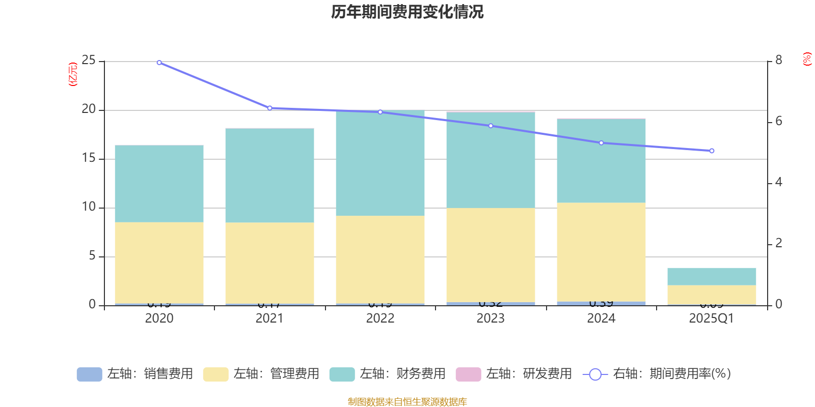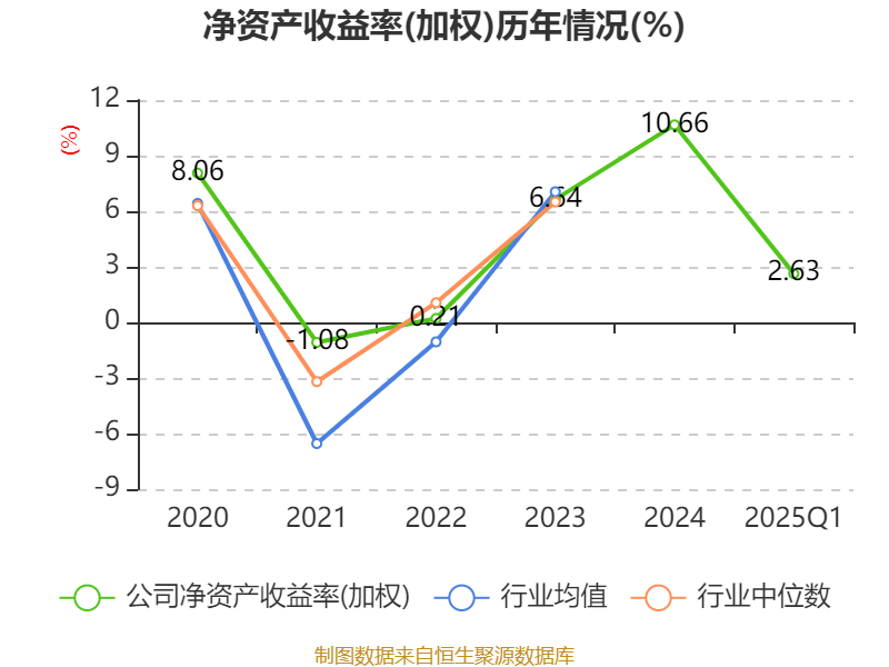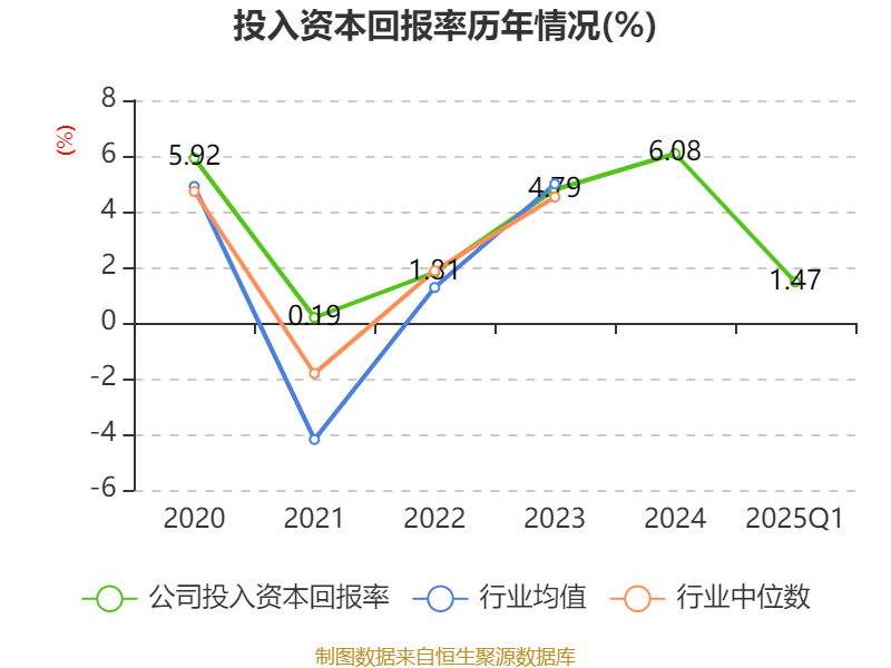 盈利能力方面, 2025年一季度公司加权平均净资产收益率为2.63%,同比下降0.05个百分点。公司2025年第一季度投入资本回报率为1.47%,较上年同期下降0.13个百分点。