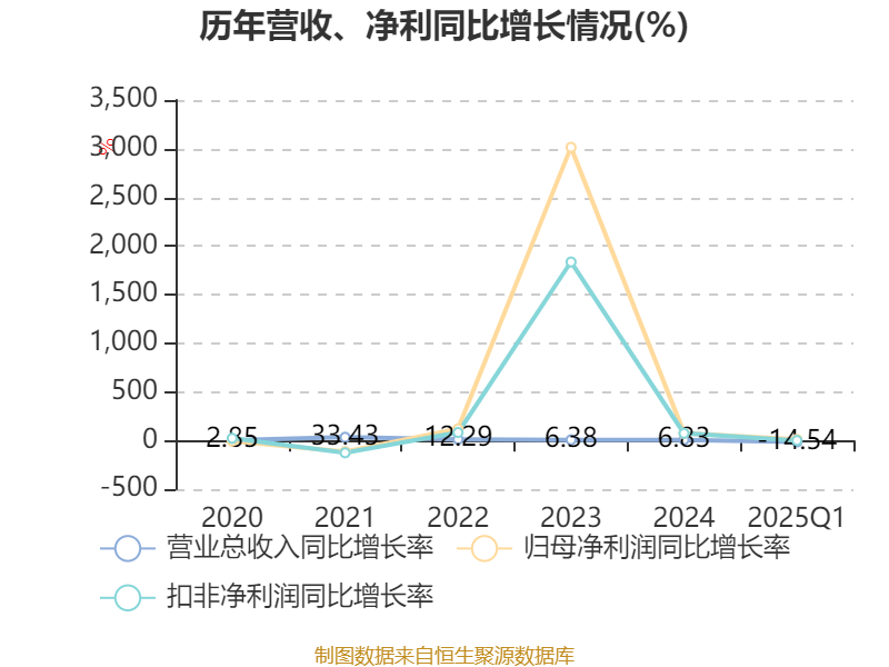 资产重大变化方面,截至2025年一季度末,公司货币资金较上年末增加24.13%,占公司总资产比重上升2.05个百分点;在建工程合计较上年末增加19.88%,占公司总资产比重上升1.54个百分点;固定资产较上年末减少1.88%,占公司总资产比重下降1.25个百分点;应收票据及应收账款较上年末减少21.3%,占公司总资产比重下降0.86个百分点。