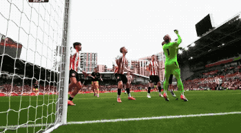 第60分钟,布伦特福德简单的定位球长传相当奏效,两名中卫连线,柯林斯头球摆渡,范登贝尔赫包抄射门踢呲了。