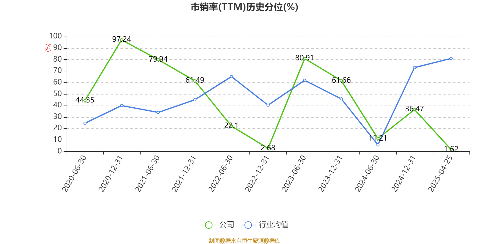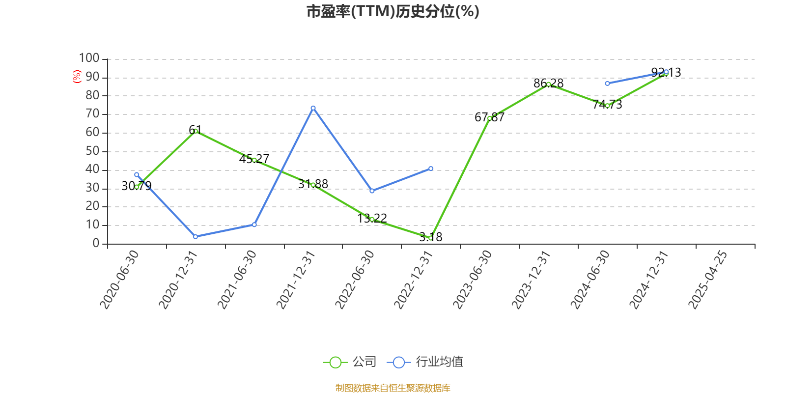 市盈率、市净率为负时云策略,不显示当期分位数,会导致折线图中断。
