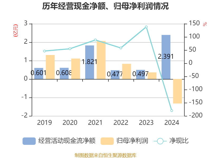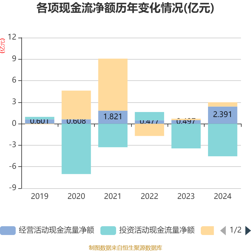 截至2024年,公司经营活动现金流净额为2.39亿元,同比增长381.47%;筹资活动现金流净额5979.28万元,同比增加3968.08万元;投资活动现金流净额-4.54亿元,上年同期为-3.44亿元。