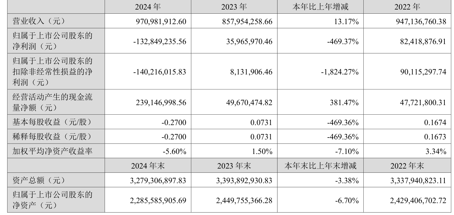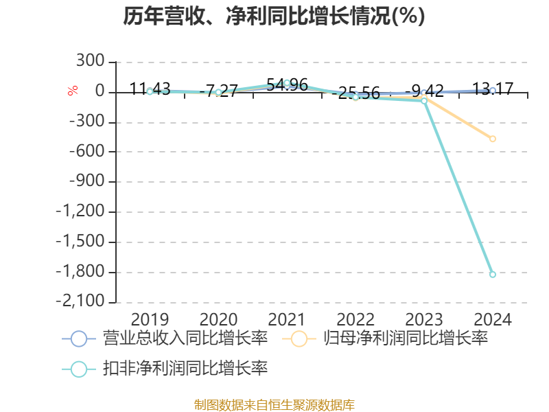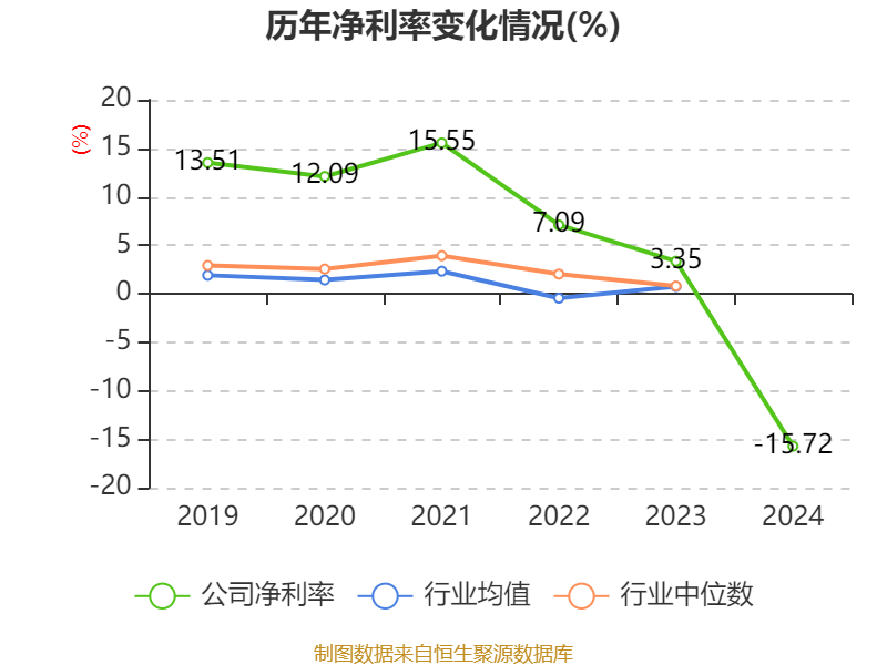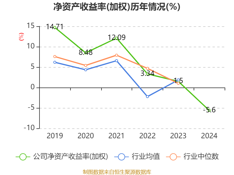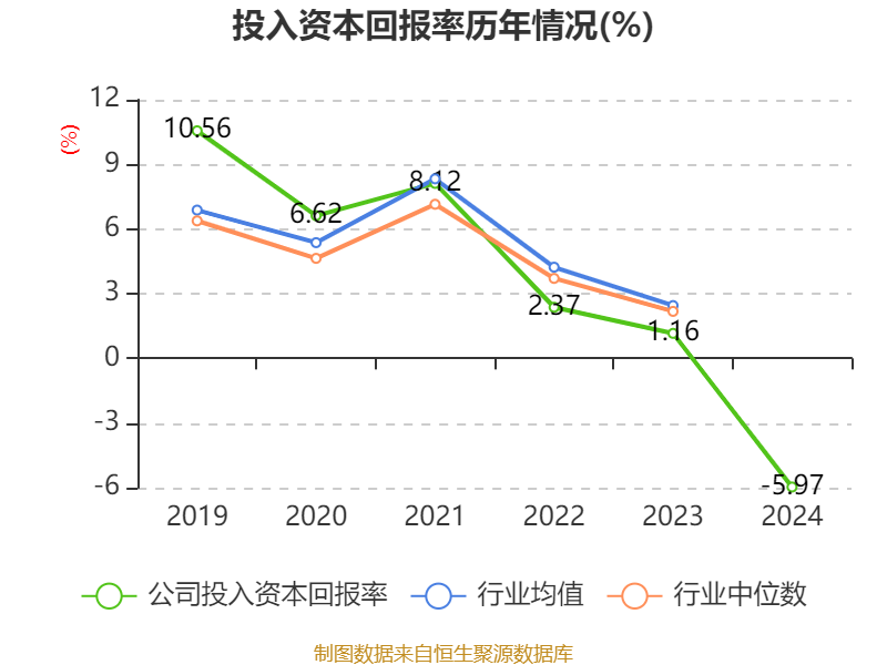 数据显示,2024年公司加权平均净资产收益率为-5.6%,较上年同期下降7.1个百分点。公司2024年投入资本回报率为-5.97%,较上年同期下降7.13个百分点。